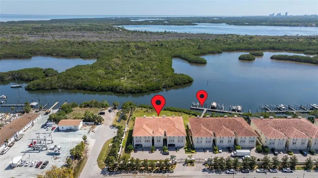 THIS WATERFRONT HOME HAD NO FLOODING FOR EITHER HURRICANE DUE TO IT'S HIGH 11 FT ELEVATION! Experience the pinnacle of WATERFRONT luxury in this exceptional townhome with a DEEDED 40-FOOT DEEP-WATER BOAT SLIP, located in the exclusive, GATED community of Portofino at Venetian Bay. Perfectly positioned along the tranquil waters of Masters Bayou, this residence offers breathtaking panoramic views of Weedon Island Preserve and Snug Harbor, with DIRECT ACCESS to TAMPA BAY and the Gulf of Mexico. Whether you're setting sail for a day on the water or launching a kayak or paddle board to explore the serene mangroves, this home is designed to embrace the Florida lifestyle. With almost 3500 SQUARE FEET of sophisticated living space, this meticulously crafted townhome boasts soaring 12-FOOT CEILINGS, rich hardwood flooring, and expertly polished travertine throughout. Sunlight pours through PELLA HURRICANE-IMPACT WINDOWS AND DOORS illuminating the expansive open floor plan that seamlessly blends elegance and functionality. At the heart of this stunning home lies a sprawling chef’s kitchen, ideal for both intimate gatherings and grand entertaining. Custom solid wood cabinetry, gleaming granite countertops, a large center island with additional storage, and dual breakfast bars offering ample seating create a perfect blend of style and practicality. Well-appointed with premium stainless steel appliances, including dual ovens and a built-in microwave, this kitchen is a dream for the home chef. Offering four generously sized bedrooms and four-and-a-half bathrooms, this townhome is designed to provide privacy and comfort for both residents and guests. Each guest suite features a private en-suite bath and spacious walk-in closet, while the grand owner’s retreat boasts a spacious sitting area, his-and-hers walk-in closets, and an opulent spa-like ensuite bath. Step out onto your private, covered balcony to enjoy picturesque sunrises over the bayou—a perfect way to start your day. Designed to embrace Florida’s indoor-outdoor lifestyle, the OVERSIZED PAVED BACKYARD offers plenty of space to create your own private oasis. Whether you envision a sparkling plunge pool, an outdoor kitchen, or a fire pit for evening gatherings, this home provides endless possibilities for customization. Located in St. Petersburg’s coveted Northeast enclave, this residence offers seamless access to downtown Tampa, Tampa International Airport, and vibrant downtown St. Pete. Riviera Bay Park, with its playgrounds, walking trails, and recreational amenities, is just a short stroll away. Award-winning beaches, pristine golf courses, and an abundance of outdoor activities are all within easy reach, making this the perfect home for those who love an active yet refined lifestyle. Residents of Portofino at Venetian Bay enjoy a low-maintenance, resort-style experience, with amenities including a sparkling community pool, spa, and a playground for the little ones. Landscaping and gated security are included, offering peace of mind and effortless living. Additionally, this home comes with an ASSUMABLE FLOOD INSURANCE POLICY OF $1,175 per year, due to the home’s elevation and no hurricane damage, a rare and valuable benefit for waterfront living. Seize the opportunity to own this extraordinary waterfront retreat and experience the best of Florida living. Schedule your private tour today!
