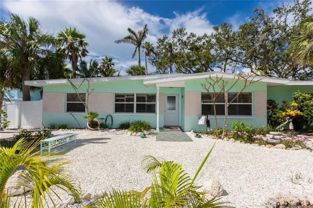 Welcome to your coastal retreat situated on a double lot totaling 1/3 of an acre. This beautifully maintained property offers the space, privacy and coastal charm that's becoming increasingly hard to find. Surrounded by mature, tropical landscaping, this property features winding crushed shell walkways, a private fenced backyard, and a peaceful backyard patio. This home includes three bedrooms and three bathrooms with a split-bedroom floor plan ideal for guests and working from home. The kitchen has been newly renovated with beautiful quartz countertops, a breakfast bar, new appliances, and two large storage pantries. A separate dining room provides ample space for gatherings or daily meals. The spacious primary bedroom includes built-in closets and sliding doors that open to a private patio area. Terrazzo flooring and tile throughout, and the home has been freshly painted inside and out. Bonus: A versatile bonus room (currently being used as music room) can easily serve as a fourth bedroom, office, home gym, or media space. Additional improvements include new baseboards, new interior doors, new water softener, and a dedicated indoor laundry room. Enjoy exclusive residents-only beach access just across Gulf Blvd. and a private boat launch at the end of the street. The nearby Belleair Beach Community Center offers pickleball, tennis courts and a basketball court making this a lifestyle property as much as a home. What truly sets this property apart, is the expansive, private outdoor space - a peaceful retreat where you can relax, entertain and connect with nature. Whether you are dreaming of peaceful everyday living, a vacation escape or a future development opportunity, this tropical retreat is a must-see.