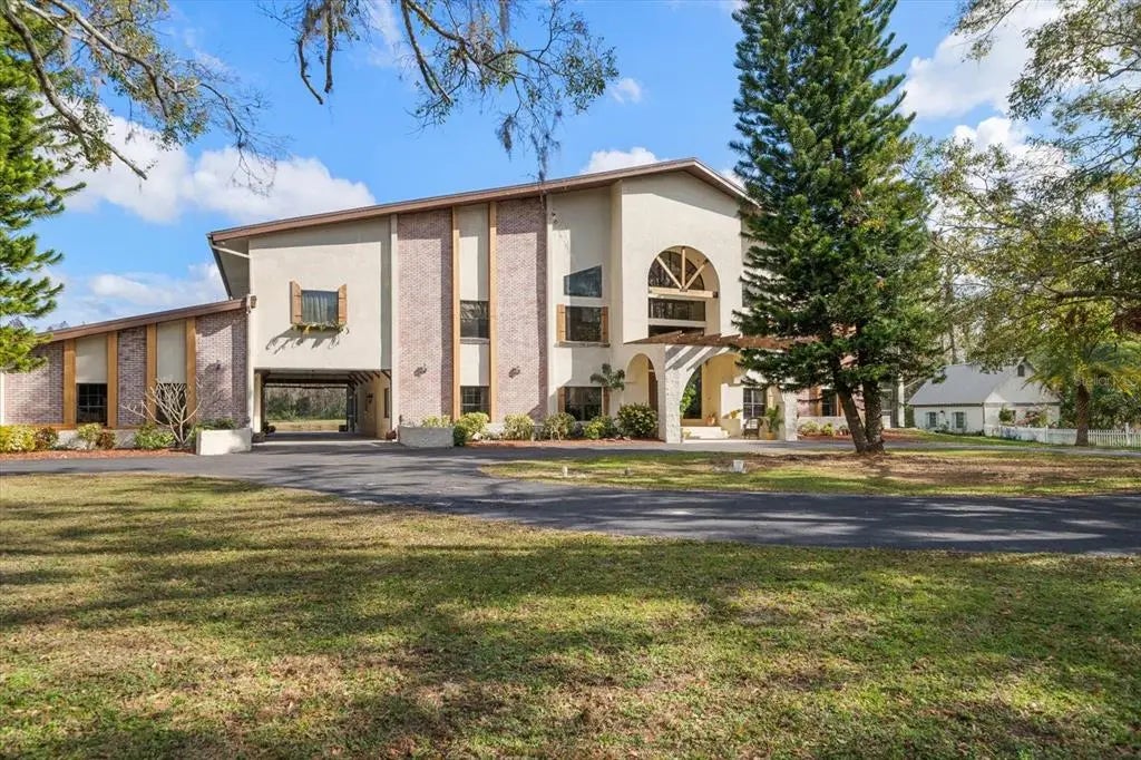 Imagine an exceptional opportunity to blend your passion for equestrian pursuits with the elegance of a luxurious residence in beautiful Odessa on nearly 11 serene acres. Drive through a private gate and follow the winding drive to your stunning rural haven nestled in a tranquil setting overlooking a peaceful pond. This extraordinary 6 bedroom, 8 bathrooms, estate offers the perfect blend of refined country living and modern luxury. Complete with a bonus room, 3½-car garage located on the side with a workshop, and a circular driveway. The property is further enhanced by a porte-cochère seamlessly connecting the home and garage, adding both style and convenience. Upon entering this home, you’ll be greeted by the grandeur of soaring 33-foot ceilings, a cozy fireplace, elegant travertine flooring, stone accent trim, all designed to frame breathtaking views of the serene pond. The main floor features a private in-law suite with its own bedroom, full bathroom, huge walk-in closet, and living room. In-law suite can easily become your primary suite on the main floor. There are 2 separate entrances for privacy, perfect for guests or extended family. On the opposite wing, the newly remodeled kitchen is a chef's dream. It boasts a stunning combination of marble and granite countertops, custom cabinetry and lighting, a gas stovetop beneath a bronze-clad hood, and a massive island ideal for preparing and sharing gourmet meals. Adding a touch of timeless elegance are unique antique Egyptian doors as you enter the kitchen, a true showpiece of character and charm. The kitchen also features a custom built bar hidden behind another set of Egyptian doors! Off the kitchen is a half bathroom and nice sized laundry room with bronze countertops. Meander up the stairs to the 2nd level with lots of wall space for your artwork and you have 4 bedrooms plus an office. Each bedroom has its own bathroom, high ceilings, and incredible views of the pond. This level also has a balcony that wraps around the home to take advantage of the views of the pond and wooded areas. The Primary suite is massive with high vaulted ceilings, a walk-in closet, nice sized bathroom with triple sinks, make-up area, and huge shower. Step out onto the expansive screened balcony which wraps completely around the back and one side of the home. This space offers unparalleled views of the tranquil pond, making it perfect for relaxation or entertaining. The outdoor features are just as impressive. A charming small animal barn — formerly known as 'Happy Hare' — presents endless possibilities as a retreat, man/woman cave, or even its original purpose. Golf enthusiasts will delight in the private putting green, while equestrians will enjoy the proximity to a nearby nature preserve featuring nearly 5 miles of scenic riding trails. This exceptional estate offers a unique lifestyle that seamlessly combines luxurious living with outdoor adventure, creating the ultimate private sanctuary. Convenient to Tampa, both Airports, Beaches, shopping, and all Tampa Bay has to offer!