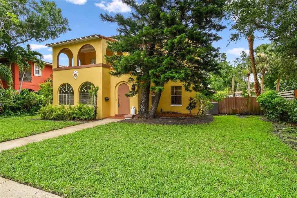 One or more photo(s) has been virtually staged. Step into the timeless charm of Historic Old Northeast with this beautifully preserved 1926 home, where classic charm, vintage elegance, and sun-drenched spaces come together, just blocks from the sparkling waterfront. Nestled among brick-lined streets less than two miles from Vinoy Park, this freshly painted home features refinished hardwood floors that gleam beneath abundant natural light. Period arched doorways, vintage lighting pieces, and French doors throughout create a warm, elegant flow from room to room. The spacious sunlit kitchen connects to a cozy bonus room—perfect as a library or creative studio—that opens onto a new deck (2025) overlooking a shaded garden ideal for al fresco dinners, weekend brunches or quiet morning coffee under Florida’s iconic climbing vines. The wood-burning fireplace offers a cozy gathering spot in the living room. The primary bedroom upstairs boasts a private balcony with tranquil garden views, while the guest bedroom opens to rooftop access. The guest bathroom features a classic soaking tub beneath a sunny window that fills the space with soft serenity. A unique feature of this home is an attached in-law suite with its own private entrance, living room, kitchenette, bedroom, and bath - ideal for guests, income potential or creative use. A detached 2-car garage, updated roof (2022), and separate laundry room add comfort and convenience. Surrounded by brick streets, front porch conversations, and a neighborhood rich in character and community, this home is move-in ready as is—or ready to be lovingly styled into something truly spectacular. Whether you preserve the historic ambiance or blend it with modern luxury, this property is the kind of place that evolves with you. Come fall in love with the elegance, soul, and endless potential of Historic Old Northeast. Surrounded by brick streets, front porch conversations, and a neighborhood rich in character and community, this home is move-in ready as is—or ready to be lovingly styled into something truly spectacular.
