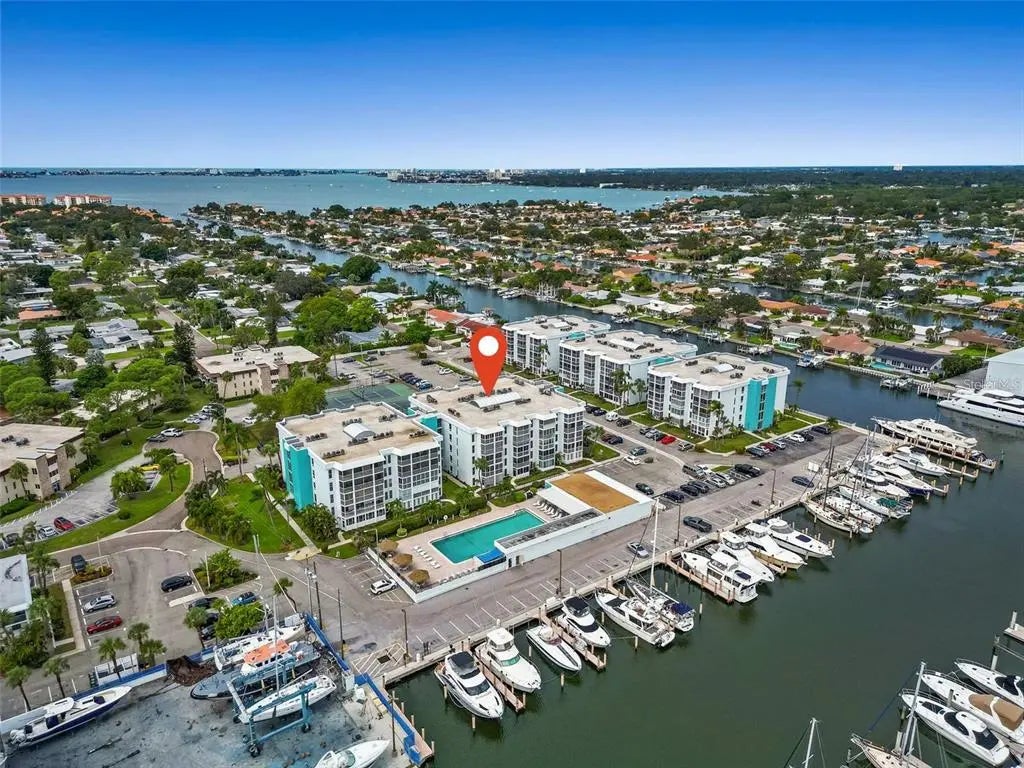 Welcome to paradise at Maximo Moorings WATERFRONT community where luxury and convenience come together in this stunning 3-bedroom, 2-bathroom top floor corner unit. This condo is FULLY FURNISHED & EVERYTHING INCLUDED that has everything from Custom designer white beveled Cabinets which are all soft close, marble countertops, stainless steel appliances, stackable front load washer & dryer, high ceilings, wood-tile luxury vinyl plank floors throughout, with split floorplan with master bedroom (separate from the other bedrooms) with king bed and bathroom has a stand-up shower, the other 2 bedrooms (one has a queen size bed and other bedroom has a day bed with 2 twins and bathroom has shower and tub. Enjoy the canal views and sunsets on a large balcony that is just 30 ft long that you have access from living area, master bedroom and 2nd bedroom located on the top 5th floor ( elevator in building which is key pad system) with direct access to the water your guests can tie their boat up directly outside your building, The Tiki Docks Skyway Bar and Grill for your dining pleasure in the heart of Maximo Marina, residents relish the convenience of a 72-hour community day dock or for storing your boating toys at Maximo Marina. Min lease is 3 months and pets are welcomed. As part of the Maximo Moorings community, you'll enjoy an array of amenities that truly enhance your Florida lifestyle including clubhouse, large, heated pool, men's and women's saunas, fishing pier, tennis, pickleball and shuffleboard courts, 3 outdoor gas grills, a fenced dog park, car wash and storage for your water toys (paddle board, kayak), and more. This resort style community is a short distance to everything restaurants shopping, pharmacies, St Pete Beach, (approximately 3 miles away from the stunning Gulf beaches). Fort Desoto Park, The Pinellas Trail, Downtown St Petersburg with its many museums, The Pier, and I-275 for a short drive north to Tampa to enjoy professional Football and Hockey or south across the Skyway Bridge to the Sarasota area. Don't miss out on the opportunity to experience Florida living at its finest with this waterfront gem. Maximo Moorings is waiting to welcome you home!
