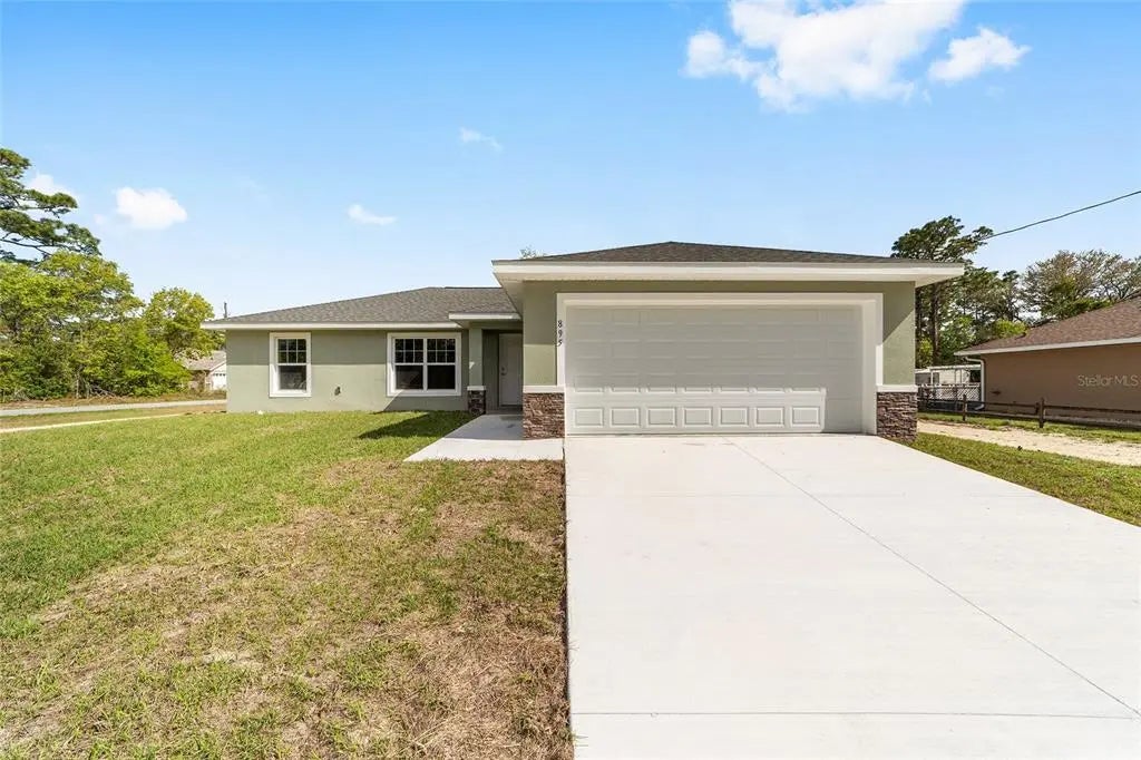 One or more photo(s) has been virtually staged. This gorgeous brand-new home located in Citrus Springs is the ideal escape from the hustle and bustle of city life! With an open floor plan, pleasing neutral colors and vinyl plank flooring throughout, this 3-bedroom, 2-bathroom residence has all the charm and comfort any family could desire. Showcasing shaker style cabinets with granite counter tops in the kitchen, a washer/dryer hook up in the inside laundry for added convenience, plus a stainless-steel appliance package, this home is sure to impress.Enjoy your time in the neighborhood while nearby shopping, dining, medical centers and natural springs keep life exciting. Plus, its location near pristine rivers and springs allows for outdoor activities whenever adventure finds you! The builder installs 6,000 sq ft of sod. INSERT